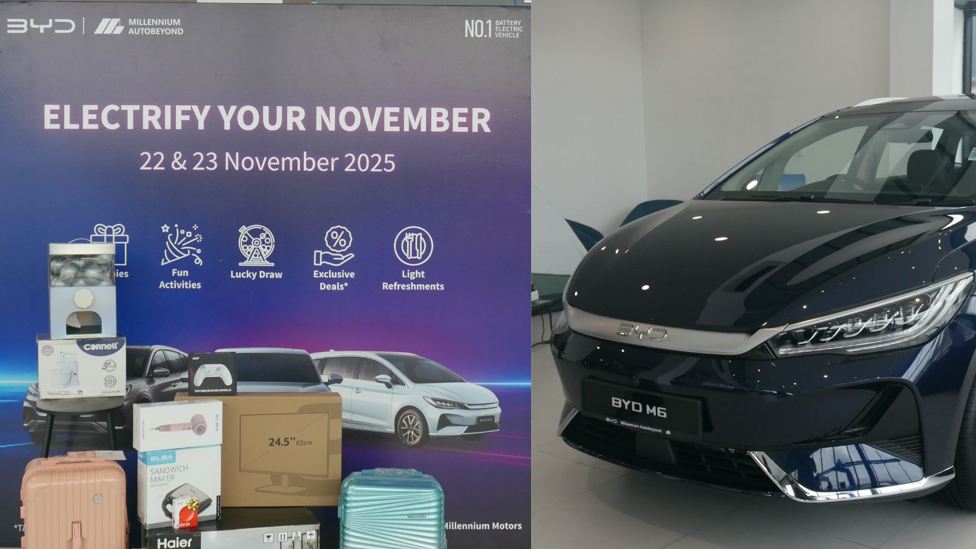 Bandar Utama, El Sky News — The “Electrify Your November” event by BYD Millennium Motors continued to draw visitors today as the BYD Bandar Utama showroom showcased a lively mix of activities, promotions, and the latest EV models.